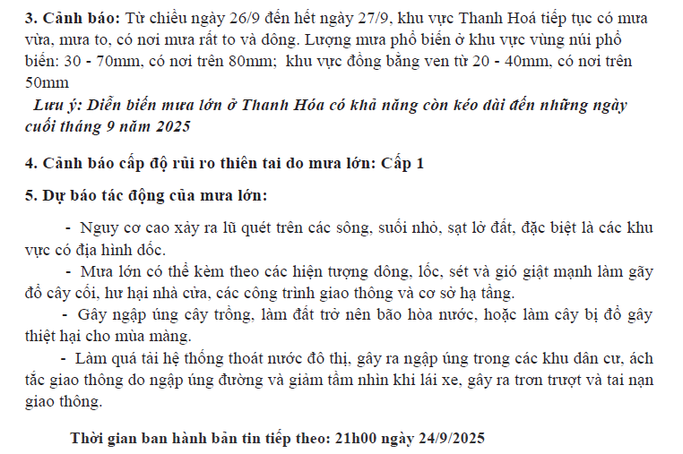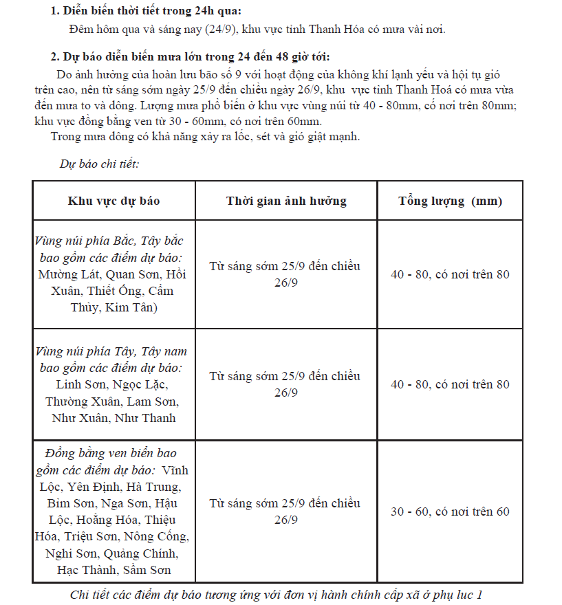 TIN DỰ BÁO MƯA LỚN Ở THANH HÓA